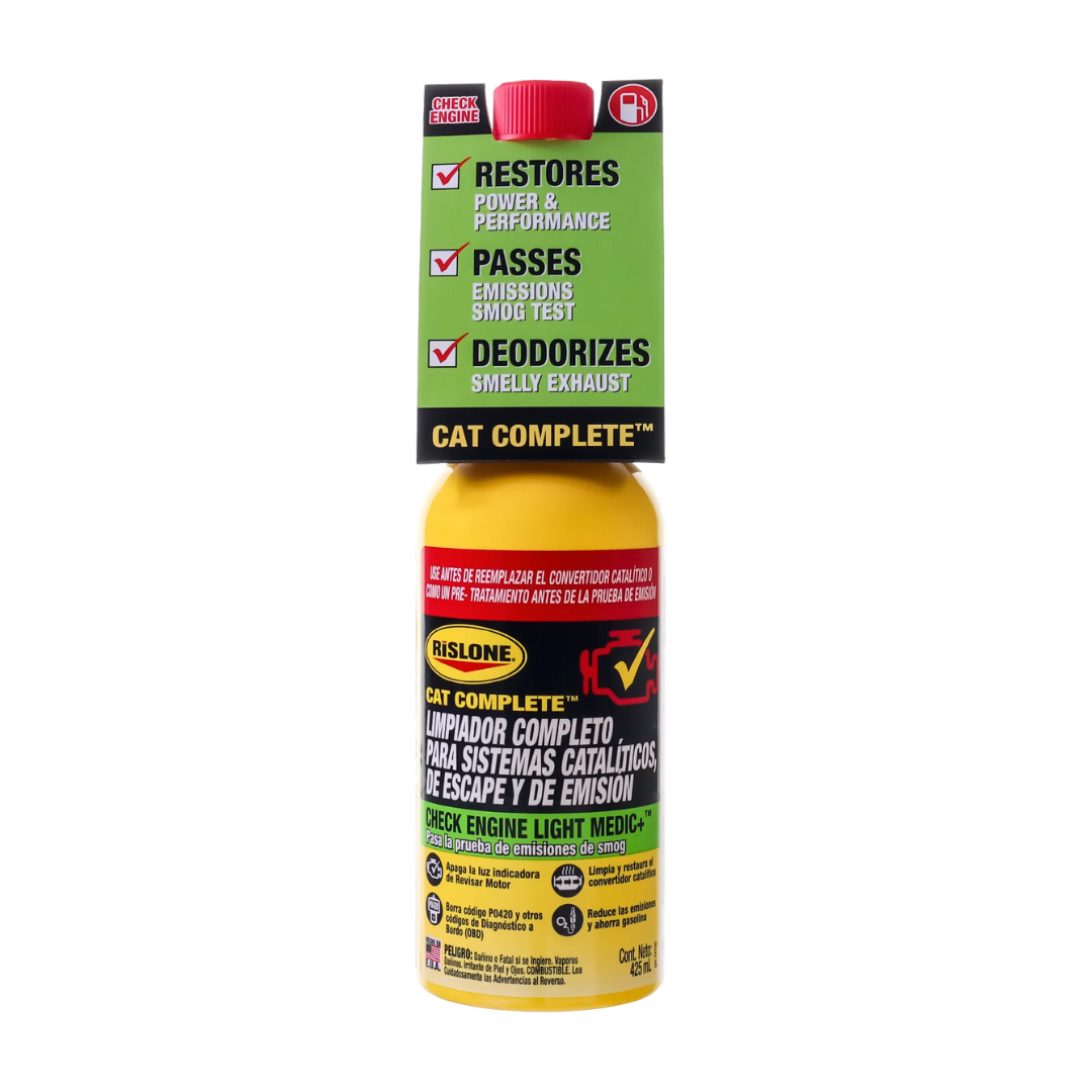Presentamos el limpiador completo de sistemas catalíticos, de escape y de emisión de Rislone: el producto más avanzado para el convertidor catalítico y las emisiones disponibles en cualquier lugar.